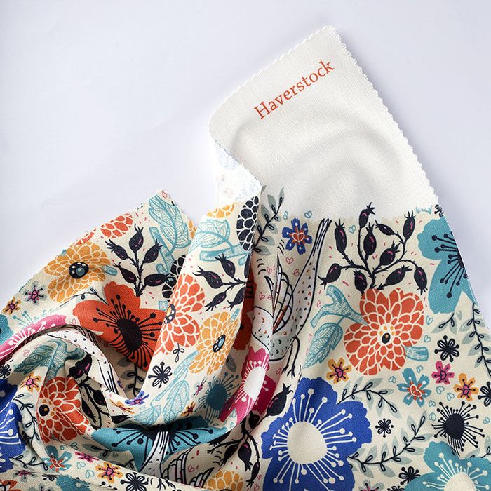 Floaty and buttery soft fabric with an elegant drape. Plain woven lightweight 100% viscose with slight stretch in the weft. Super bright colours & deep blacks when layered. Printed using reactive ink chemistry.