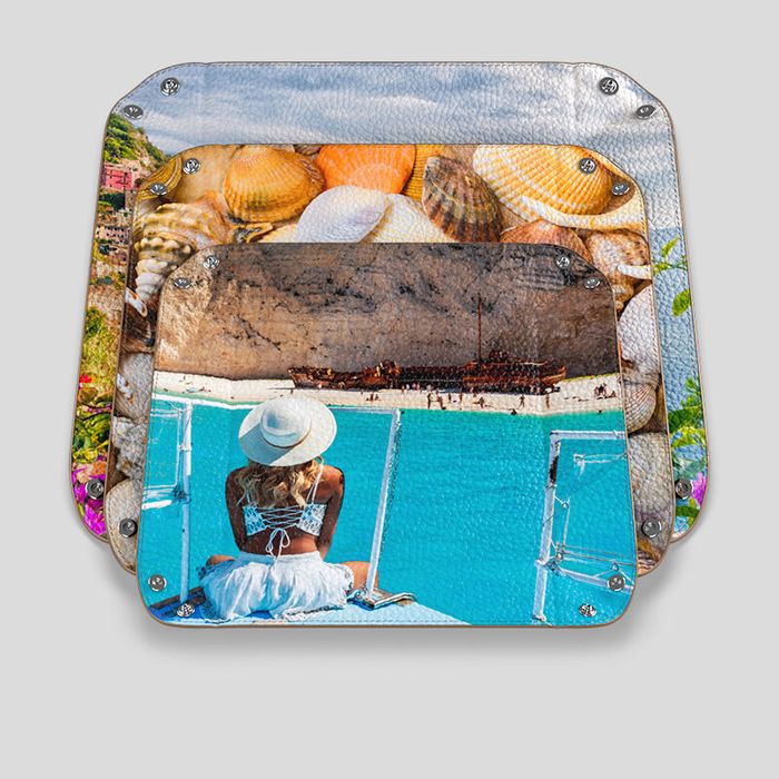 A custom leather valet tray makes a fantastic gift for a partner. If you share space, these trays can help keep things organised on your dresser or desk. The personalised trinket tray is great for jewellery, notes, loose change, keys, craft supplies, office supplies, or basically anything you need to keep tidied up. You'll always have a use for it, and with your photos printed right on the leather, it will be guaranteed to bring a smile to your face.