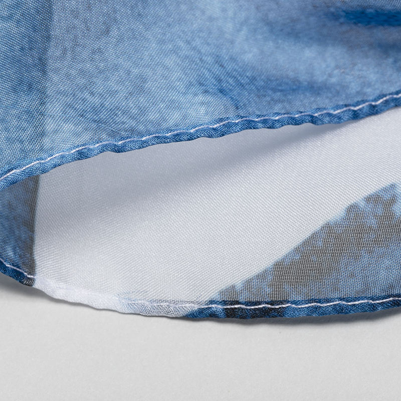Handmade by our expert seamstresses, hijabs printed with your own unique designs are a beautiful gift for yourself or a loved one. We use a specialist printing technique that fuses the ink deep into the fibres of the fabric, creating a long-lasting print so your designs won't fade. We finish the edges with a hemming style of your choice, either baby hem or 3-thread overlock. Baby hem uses 8mm of material on each side, folded twice then a top stitch approximately 2-3mm from the edge. The 3 thread overlock trims off 3mm