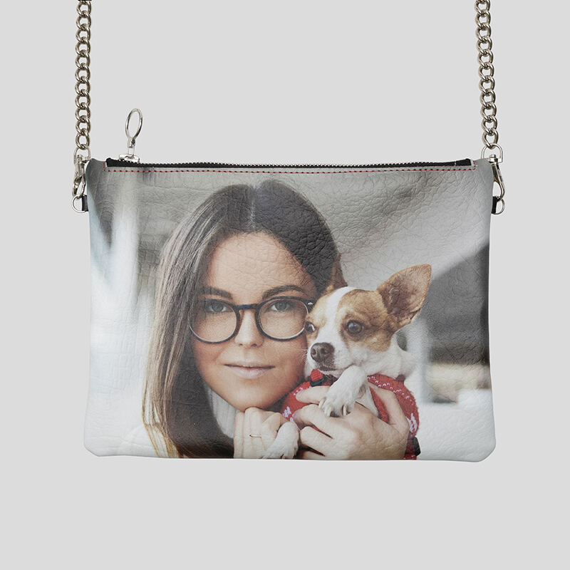 Your personalised crossbody bag has been designed in-house by our very own exclusive handbag designer. When you place an order, our printing technicians will use modern digital printing techniques that are tailored specifically for leathers to print your photos directly onto the material. This is then passed onto the craftsmen who will cut the leather (or leatherette) to size, based on the pattern provided by the designer.