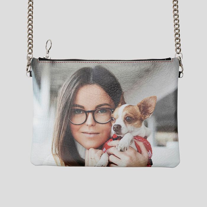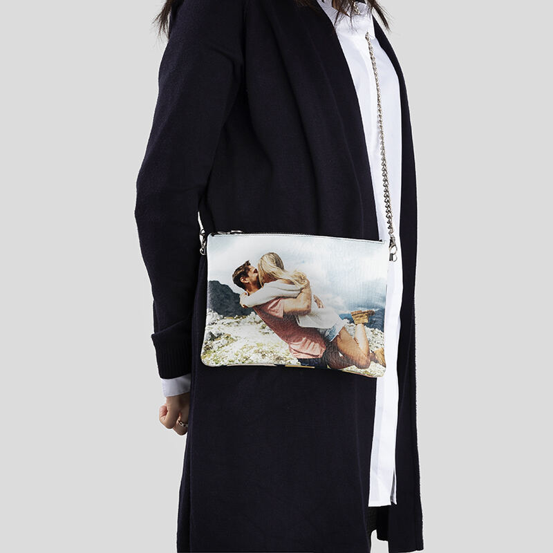Turn heads wherever you go with a personalised leather crossbody bag featuring your favourite photos.