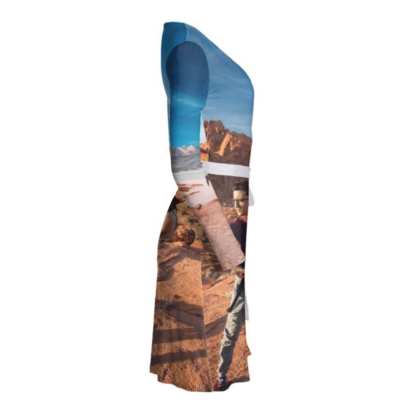 Ideal for the body conscious, this personalised wrap dress is figure hugging and can be customised with your favourite photos.