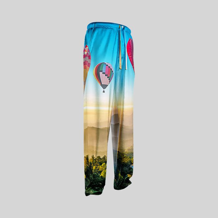 In our men's custom silk pyjamas, you’ll want to wear the PJ shirt everywhere, and conveniently you can. The pyjama top go-to is breezy in fit with modern mother of pearl button closure. Oversized in the generous, luxurious way, you can customise its 6 panels and wear it about the house, WFH or on daytime cafe visits. The PJ shorts in the personalised luxury silk pyjama set for men are as suitable at a summer barbecue as they are in bed too. It has a drawstring waistband and breezy yet slim fit that finishes just above the knee that can you trick out in lively holiday photos, subtle images and text. Our trousers are super practical with a nice, straight-cut fit that ensures a classic look, while allowing room to lounge around the house freely.