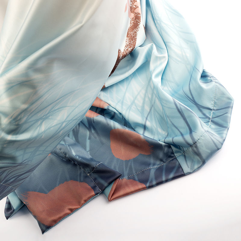 Your design is printed by our expert technicians using the latest digital printing techniques. Using a deep infusion method, eco-friendly inks are penetrated deep into the fibres of the fabric. This results in a long-lasting print which will not fade, peel or crack. Because of the state-of-the-art technique, your bridal robes will retain their original handle; there won't be any alteration to the texture of the sumptuous fabric that you would find with transfer printing.