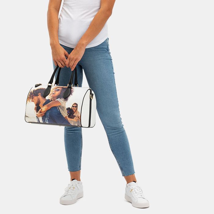 When you design your own duffle bags, you will have access to four customisable sides to upload your photos, images, and even text. You can even make each side different to tell a narrative through images of your journey together. You will also be able to customise the hardware and stitch colour: Choose between cream, grey, or charcoal thread and gunmetal, nickel, or gold colour metal hardware.