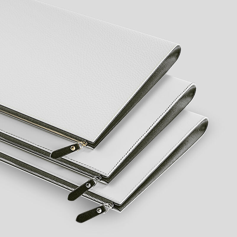 Because each piece is made especially for you, every detail is up for discussion. Decide between smooth or bubble full-grain Nappa, pick cream, grey or charcoal stitching and finish with gold, gunmetal or nickel hardware. The result is a personalised A4 leather folder that feels unmistakably yours.