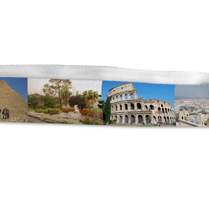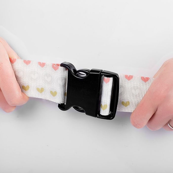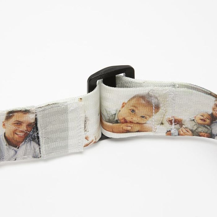 Bold lettering and striking patterns look fantastic on a personalised luggage strap. If you add photos, make sure the main subject is large, as the textured webbing doesn’t suit tiny details.