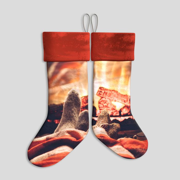 The stocking is a classic sock outline, so keep important faces or text away from the narrow toe. Use the cuff area for a name, initials or a festive greeting like ‘Nollaig Shona’. Create a collage of family photos or design matching custom Christmas stockings in colours that coordinate with your tree. Pets can join the fun too – a custom dog stocking stuffed with treats will stop them pinching the turkey!