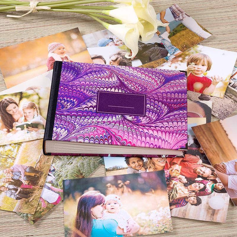 With our design interface, you can add as many photos as you want to the front and back cover, or scale it back and just print one powerful photo to best showcase your theme. You can also add text to your scrapbook cover, perfect to note the date or occasion.
