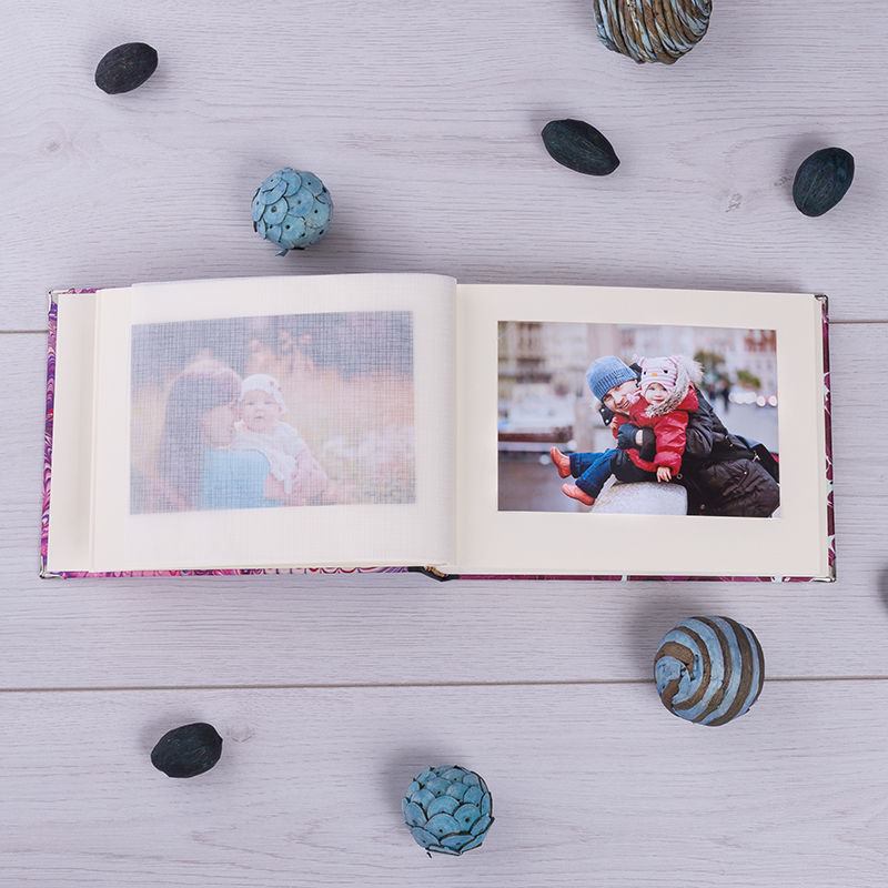 The Monroe satin we use for the hardback covers is a woven fabric, so we recommend using images and designs with bolder detailing or larger photos to ensure a sharp finish. If you'd like to create a giant photo collage on the front and back, simply upload and select several photos then choose one of our ready-made montage styles or have fun arranging the photos yourself. Just like the potential of your scrapbooking ideas, what you can print to personalise the covers is limitless. The covers have metal corner protectors, however, this shouldn't infringe on your design.