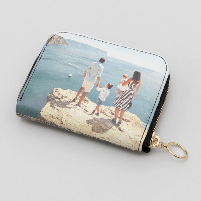 Well, not the gap so much as the fold. When designing your custom photo women's wallet, bear in mind that you design the front and the back separately. Your personalised womens wallet with zip, however, is made from one complete piece of leather or oilcloth. This means that there will be an image 'seam' at the bottom where the two designs join. This is barely noticeable when your personalised ladies wallet is in use, and you can minimise this effect by using two photographs with similar colour palettes.