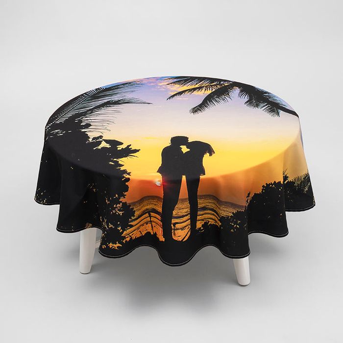 The main focal point of your image should sit at least 20 cm from the edges so it won’t be hidden in the drop. All-over repeats, logos and patterns work brilliantly for custom tablecloths, while photo collages create a real talking point. If you’re creating a branded table cloth for business, keep your logo centred and add social handles or a web address around the border.