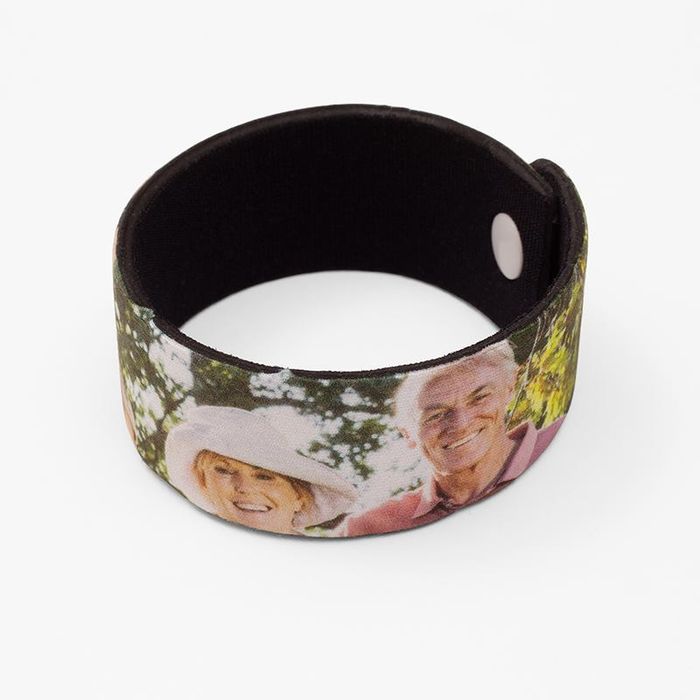 Our team of skilled technicians and artisans work together to print your photos to perfection on the neoprene fabric, before cutting it to just the right size and shape. Neoprene is a lovely fabric, full of character and it has wonderful print qualities. Your photos will be printed with exceptional attention to detail, with fine lines and colours reproduced flawlessly. A press stud is added to ensure a comfortable and secure fit, and your wristband is complete.