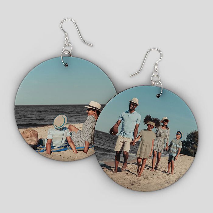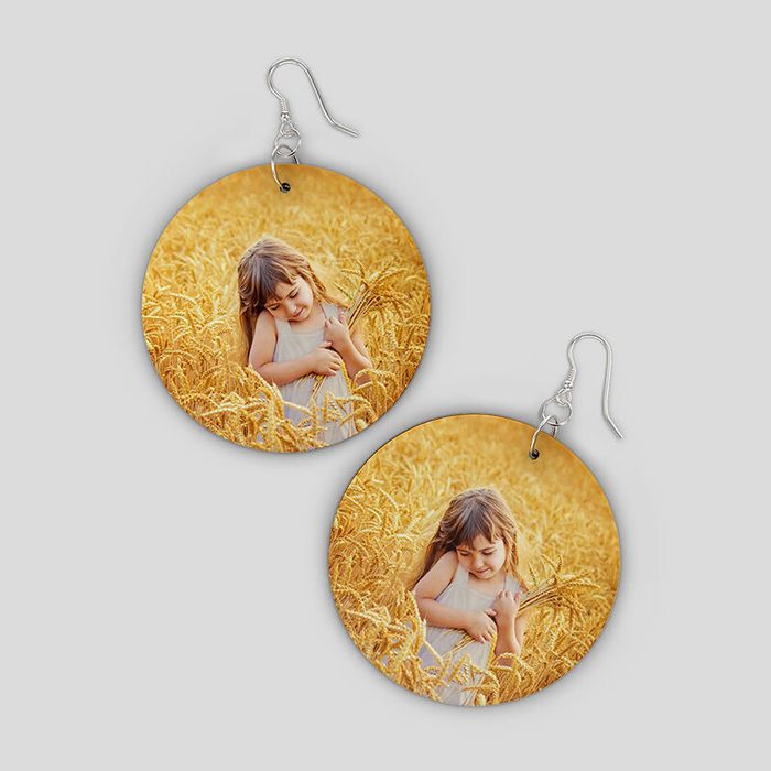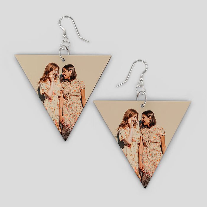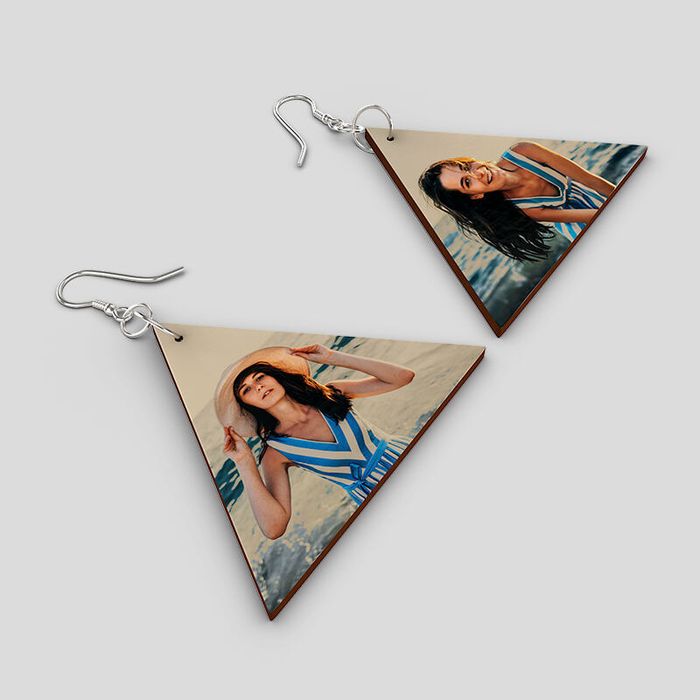 Keep the earring shape in mind when you upload your image. For triangles and cut-out circles, position your artwork so that no important details are lost. Repeat patterns work particularly well on the cut-out style, while centred photos look best on the other shapes.